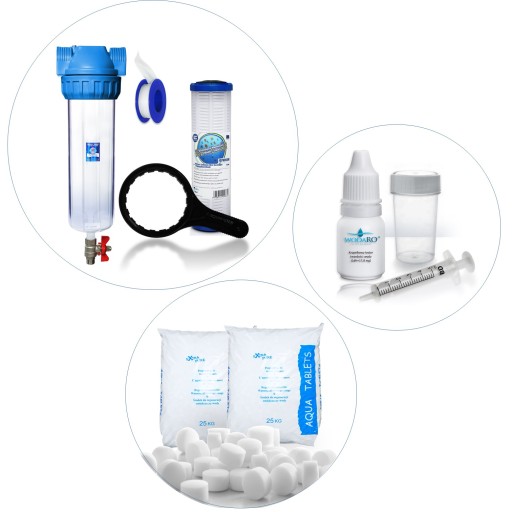 Zestaw montowany przed zmiękczaczem w celu poprawy jakości wody a tym samym ochrony złoża znajdującego się w zmiękczaczu.