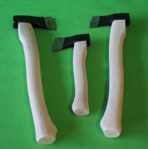 WSZYSTKIE SIEKIERY "OPRAWNE" SĄ OPRAWIONE W TRZONEK Z DREWNA BUKOWEGO (WYMIARY TRZONKÓW ZESTAWIONE SĄ PONIŻEJ).