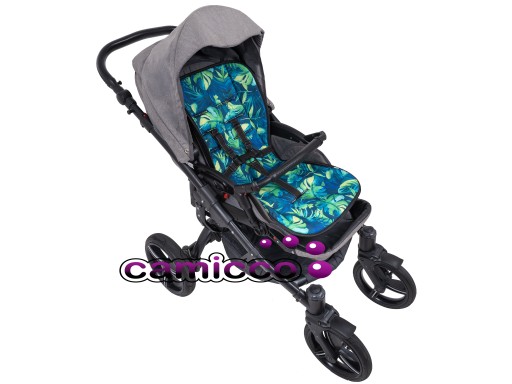 Idealnie pasuje do większości wózków spacerowych dostępnych na rynku. Wkładka wykonana jest wodoodpornego materiału który zapewnia odpowiednią cyrkulację powietrza pomiędzy ciałem Dziecka a wózkiem w którym siedzi, pod nią wszyta jest mięciutka pianka, pod spodem obszyta podszewką