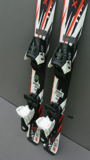 Narty używane dziecięce( nr kat.10/15) TECNO XT TEAM PRO dł. 80cm ; taliowanie 96,5-65-79,5 ; promień skrętu 5m ; z wiązaniami ATOMIC EVOX 045(zakres 0,5 - 4,5), na dł. skorupy buta 190 - 246mm.