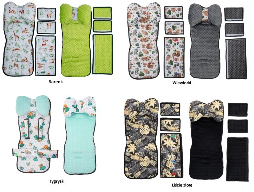 Wkładka posiada 6 otworów na pasy bezpieczeństwa, otwory na zamocowanie poduszki motylka oraz dwa otwory na 5-punktowe pasy bezpieczeństwa. Wkładki są uniwersalne testowane na wielu wózkach dziecięcych dostępnych na rynku.