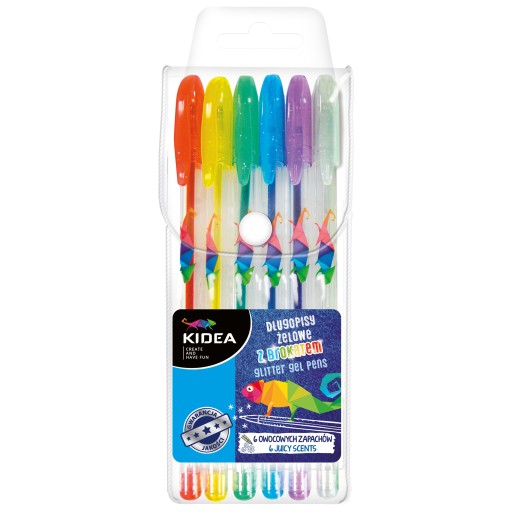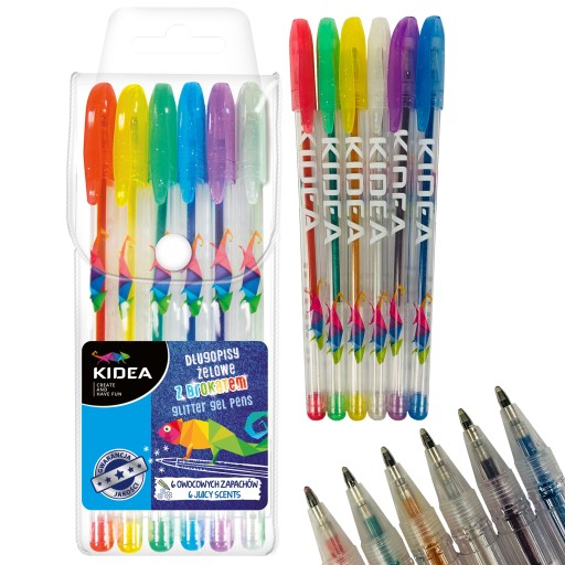 Długopisy żelowe brokatowe zapachowe KIDEA 6 kolorów