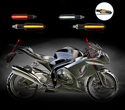 Jest to zestaw kierunkowskazów LED z funkcją pływającego (dynamicznego) kierunkowskazu dla osób chcących osiągnąć unikatowy wygląd swoich motocykli.