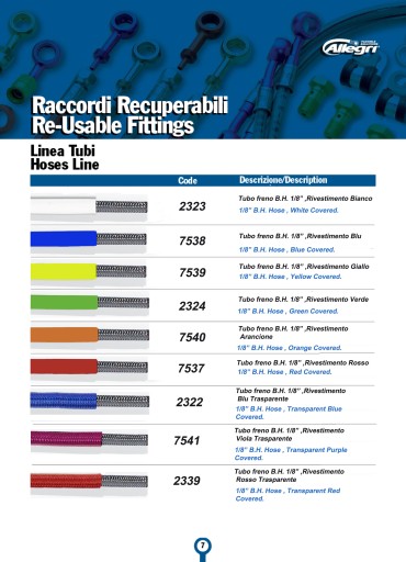 Przewody Allegri Cesare używa wielu producentów motocykli (Aprilia,Mv Agusta, Ducati,KTM, Husqvarna, Moto Guzzi,Lamborghini).Przewody posiadają certyfikaty TUV oraz DOT.