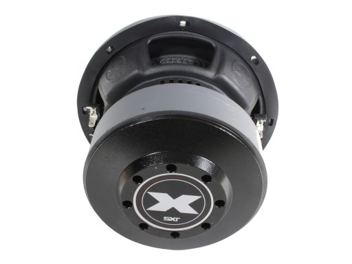 Excursion SXT, to całkowicie nowa linia bardzo wydajnych głośników niskotonowych średniej klasy w przystępnej cenie. W obecnych czasach cyfrowe wzmacniacze samochodowe dysponują coraz większą mocą wyjściową przy stosunkowo coraz niższej cenie. Zazwyczaj nie idzie to w parze z proporcjonalnym wzrostem wydajności subwooferów samochodowych, wobec których stawiane są coraz większe wymagania w podobnym przedziale cenowym. Odpowiedzią na te wyzwania są subwoofery nowej generacji T, takie jak Excursion SXT Transformer, które przy niewygórowanej cenie są w stanie zaoferować rozwiązania i parametry nawet wyższe, niż posiadały droższe głośniki SXE i SXX z pierwszej generacji (v1). Kluczem do tego było przekroczenie granic geometrycznych i wytrzymałościowych nowych koszy "T Genetation", które dzięki wzmocnionym materiałom i technologii obróbki grubszej stalowej konstrukcji są w stanie stabilnie utrzymać duży magnes (200-350 oz), obsłużyć dużą cewkę (2,5-3") oraz jednocześnie zagwarantować niższą cenę w porównaniu do konstrukcji odlewanych. Model Excursion SXT-8D2 posiadaja więc 4-warstwową cewkę o wysokości 35 mm, którą nawinięto drutem z miedzi OFC na aluminiowym karkasie o średnicy 2,5 cala. Lekka i sztywna membrana stożkowa została wykonana z kompozytu prasowanego papieru oraz grubej nieprasowanej pulpy celulozowej (Pulp in Matrix). Obszerny przyklejony i przyszyty do stożka fałd górnego zawieszenia typu HDR zapewnia wysoką wytrzymałość mechaniczną oraz duży zakres wychylenia membrany. Nowe wymagania dotyczące centrowania oraz kontroli ruchu stożka i cewki obejmują także dolne zawieszenie, które stanowi 2-komponentowy krążek (Nomex) z pierścieniem przykręconym do kosza utrzymującego pojedynczy wentylowany układ magnetyczny (200 oz) o zwiększonej wydajności. Za prawidłowy transfer sygnału odpowiadają trwałe linki przewodów zasilających cewkę oraz zamontowane do kosza solidne podwójne terminale dla nasuwkowych konektorów kabli głośnikowych (modele 10" i 12" posiadają konektory z wkrętami imbusowymi).
