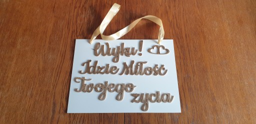 Wymiar tabliczki to 40x30cm, napisy są wykonane ze sklejki.