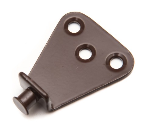 Przytrzymywacz okienny wykonany z metalu malowanego proszkowo na brązowo.