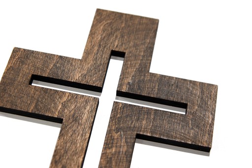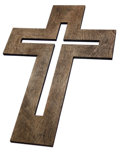 Krzyż wykonany ze specjalnej drewnianej sklejki , pokryty woskiem a następnie zaimpregnowany olejem lnianym.