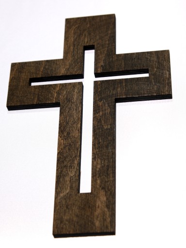 Krzyż wykonany ze specjalnej drewnianej sklejki, woskowany.