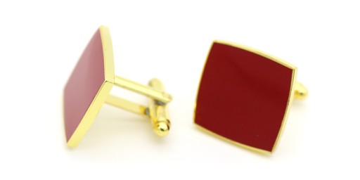 Eleganckie bordowe spinki do mankietów wraz z szafirowym etui