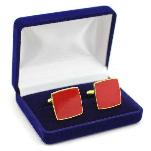 Eleganckie bordowe spinki do mankietów wraz z szafirowym etui
