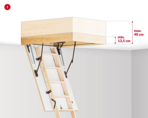 Schody oferowane przez nas na aukcji dają możliwość indywidualnego doboru wysokości skrzyni w zależności od obniżenia sufitu nawet do 40 cm.