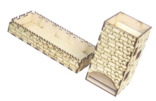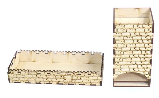 Wieża do kości ze sklejki o grubości 3mm o zewnętrznych wymiarach: wysokość: 150mm, szerokość: 80mm, głębokość: 80mm