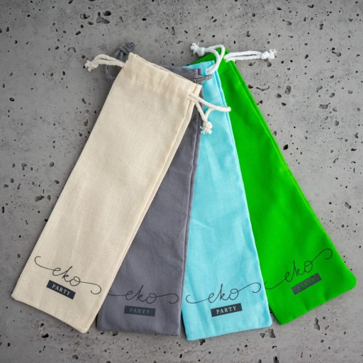 W zestawie są: 4 słomki zagięte, 1 czyścik z konopi i 1 woreczek bawełniany (kolor wybierany losowo)