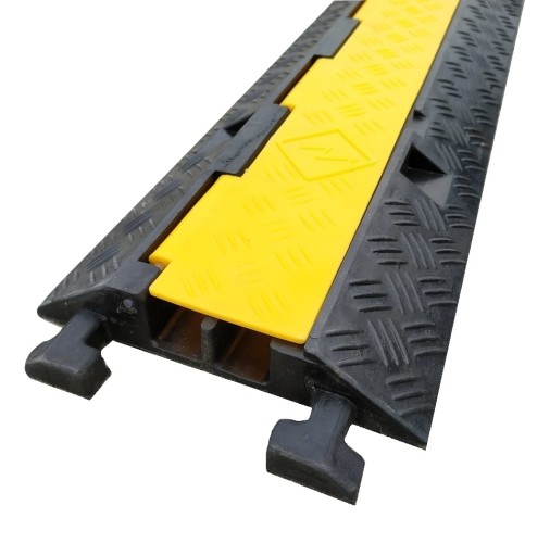 Dwukanałowy, najazd kablowy spełnia wszelkie wymagania w zakresie profesjonalnej ochrony kabli i przewodów przed najechaniem pojazdami mechanicznymi czy ruchem pieszym. Najazd dzięki nośności 6 ton na oś zabezpiecza kable nawet przed dużymi samochodami.