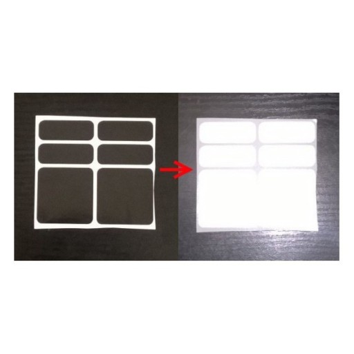 6 sztuk: 2 szt - 40 mm x 40 mm, 4szt - 15mm x 40 mm