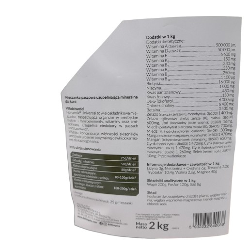 Mieszanka paszowa uzupełniająca mineralna dla koni.