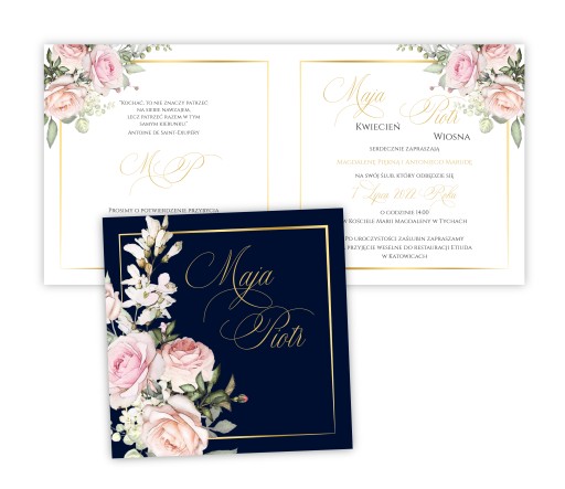 Rozmiar zaproszenia: 145 x 290 (rozłożone) / 145x145 (złożone)
