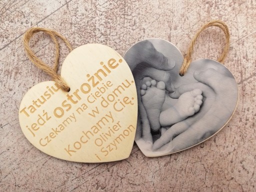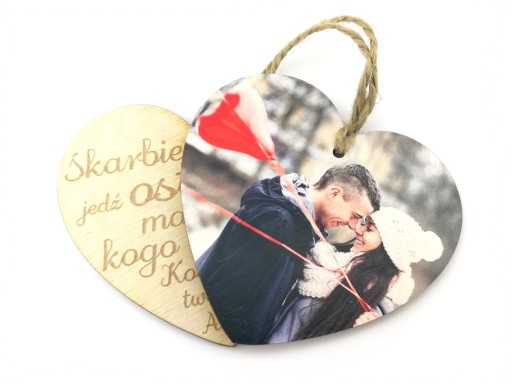 Na jednej stronie zawieszki wydrukujemy przesłane zdjęcie, na drugiej stronie wygrawerujemy podany tekst.