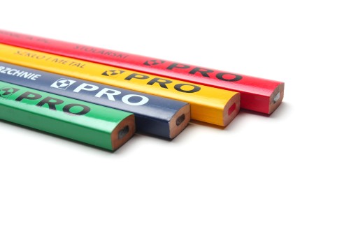 Ołówki PRO produkowane są z drewna lipowego, charakteryzującego się lekkością, miękkością oraz łupliwością. Mają baryłkowaty kształt, minkę o przekroju prostokątnym oraz długość 240 mm. Łatwo dają się strugać bez ryzyka złamania wypełnienia.
