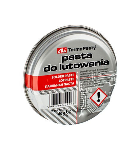 Pasta lutownicza 40g firmy AG TermoPasty to średnioaktywny topnik ułatwiający lutowanie elementów: miedzianych, srebrzonych, cynkowanych oraz niklowanych.