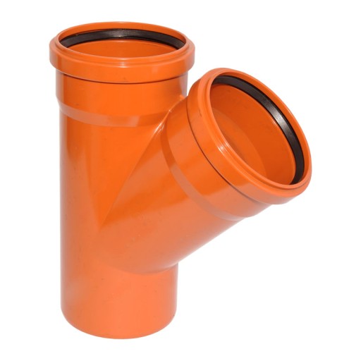 Trójnik kanalizacji zewnętrznej z Polipropylenu w pełni kompatybilne z systemami wykonanymi z PVC DN 110/110 kąt 45 stopni.