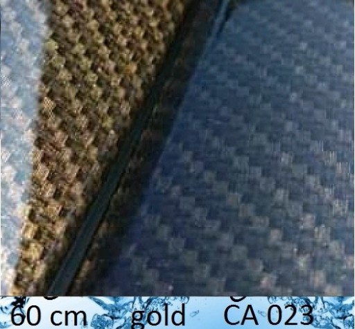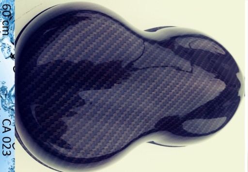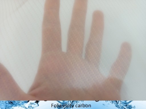 Folia to tzw. film do hydrografiki Gold carbon, przypomina przezroczystą folię z nałożonym wzorem. Dany wzór jest odpowiednikiem efektu jaki uzyska się na elemencie. Należy pamiętać, że efekt końcowy jest również zależny od dobranego podkładu. Np. czarny podkład do folii białej z serii carbon da efekt czarnego carbonu.