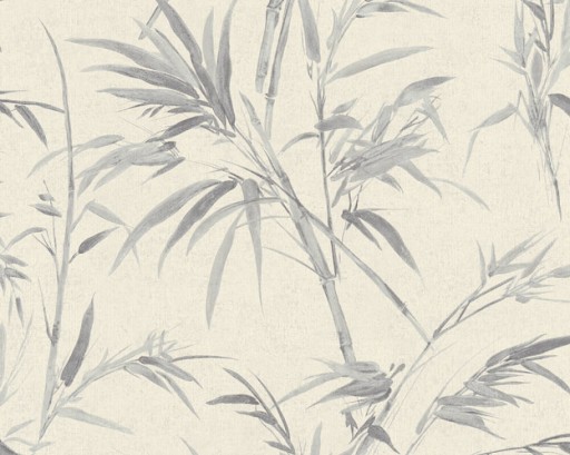 Na jasnym tle motyw delikatnych srebrzystych liści bambusa.