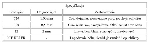 2. Głowicę 300 igieł do stosowania w okolicach oczu i ust