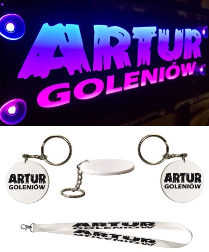 Na tej aukcji kupujesz tablice imienna 50x12 LED z brelokiem i smyczą