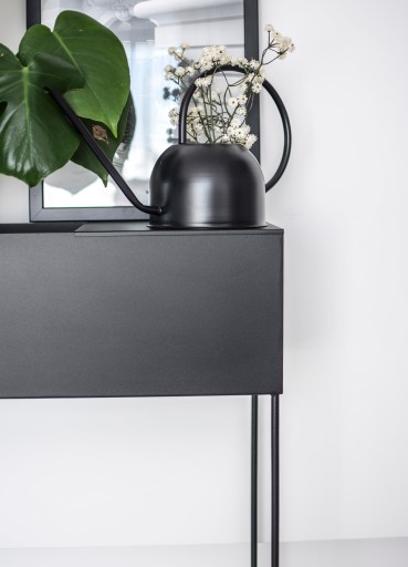 Nowoczesna, metalowa donica - stojak na kwiaty, który może też pełnić funkcję konsoli do przechowywania gazet/książek, czy przedmiotów dekoracyjnych.