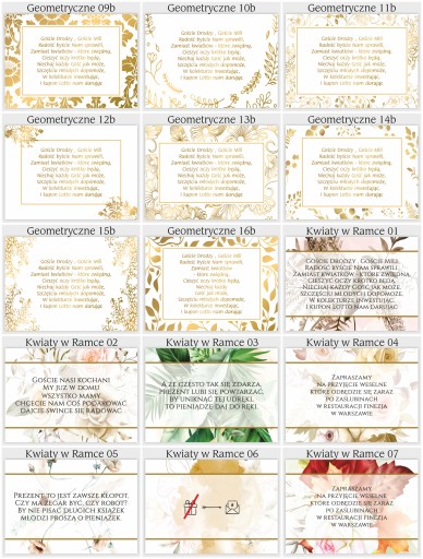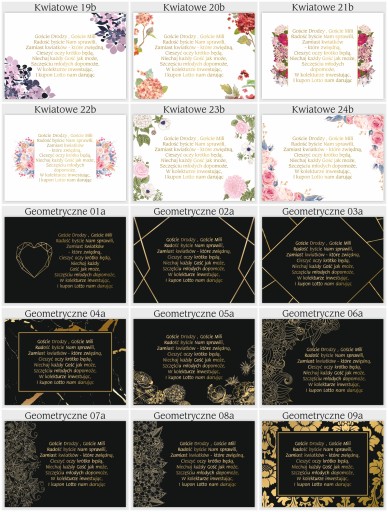 WKŁADKI - BILECIKI DO ZAPROSZEŃ ŚLUBNYCH