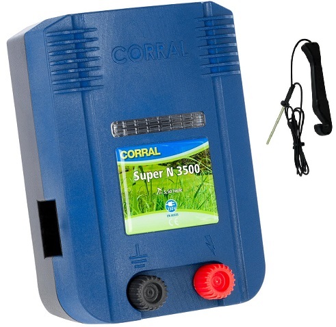 Bardzo mocny oryginalny niemiecki elektryzator sieciowy Corral N3500. Najpopularniejszy elektryzator w Polsce, idealny jako ochrona przed dziką zwierzyna(dziki, jelenie, lisy, sarny).Urządzenie odpowiada wymaganym normom Unii Europejskiej (CE) i jest sprawdzane wg europejskich standardów. Ogrodzenia elektryczne (pastuchy) są całkowicie bezpieczne dla zdrowia ludzi i zwierząt.