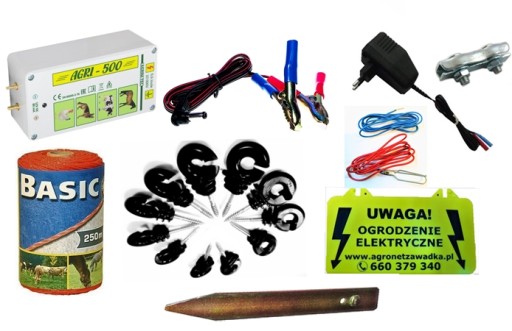 - Elektryzator AGRI-500 sieciowo-akumulatorowy (brak akumulatora w zestawie)
