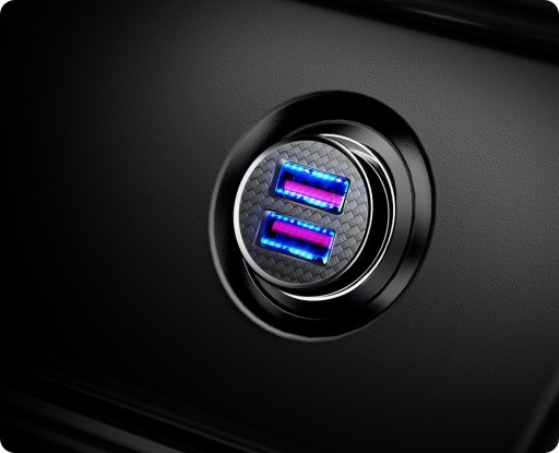 Ładowarka samochodowa wyposażona w dwa porty USB, których moc sięga 30W. Posiada wbudowane inteligentne chipy które automatycznie identyfikują podłączony sprzęt i dopasowują właściwy dla niego prąd. Zapewnia to ochronę baterii i bezpieczne, szybkie ładowanie.