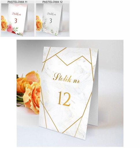 Numery na stół weselny pasujące do naszych wzorów zaproszeń ślubnych dostępnych na innych aukcjach. Numery stolików drukujemy na grubym i sztywnym papierze kredowym 350g.