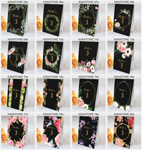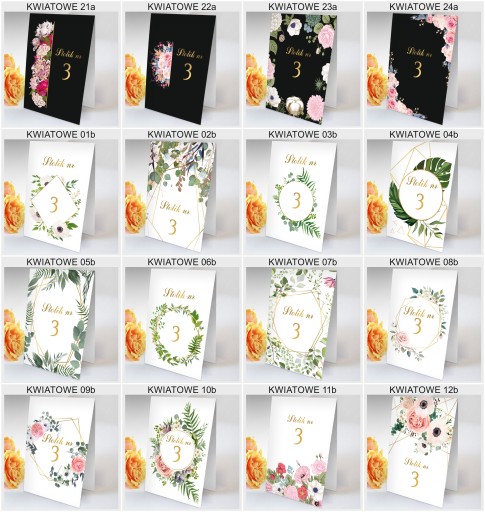 Po zakupie w uwagach do zamówienia podaj wybrany wzór graficzny. Nie ma możliwości zmiany kolorystyki wzorów graficznych, kroju czcionki, nie dopisujemy również na numerach stołów imion młodych oraz innych informacji. Edycja grafiki i tekstu na numerach jest niemożliwa.