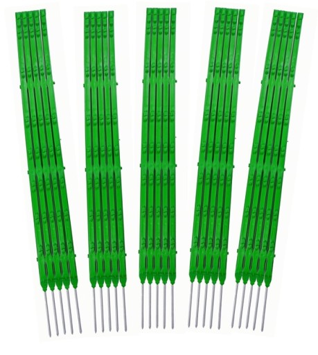 - zaczepy do przewodów rozmieszczone są na palikach na kilku wysokościach, co umożliwia rozbudowę ogrodzenia w dodatkowe linie równoległe lub wybór wysokości dla konkretnego rodzaju zwierząt.