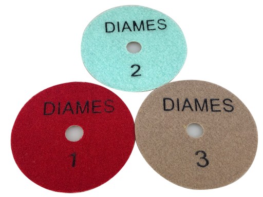KOMPLET 3 SZT PROFESJONALNYCH DYSKÓW POLERSKICH DIAMENTOWYCH 3 - STOPNIOWYCH FI 100 MM DO POLEROWANIA I SZLIFOWANIA BETONU, KAMIENIA, GRANITU I GRESU NA MOKRO