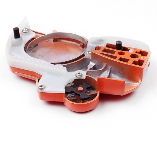 Osłona sprzęgła kompletna - zawiera taśmę hamulca, zespół napinacza taśmy hamulca, napinacz łańcucha oraz wszystkie niezbędne osłony.