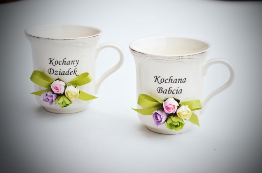Piękny i praktyczny prezent na Dzień Babci i Dziadka - ręcznik z haftem, porcelanowy kubek - całość pięknie ozdobiona i zapakowana.