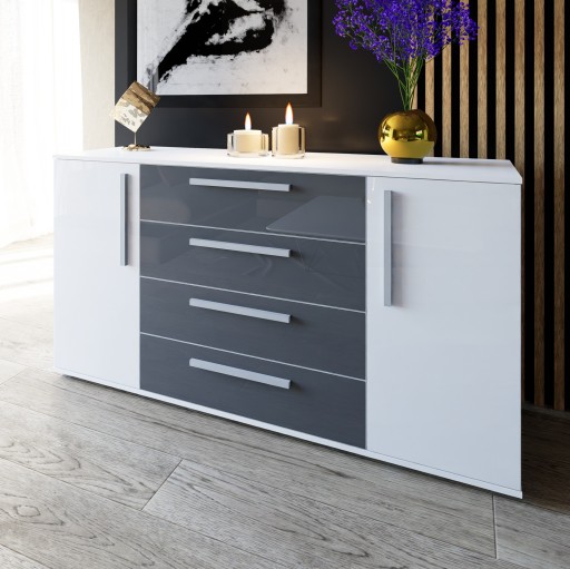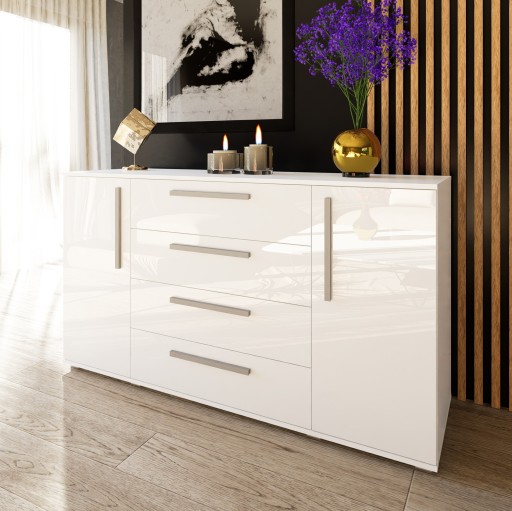 Вместительный комод R2, 160 см, ящики + шкафчики, фасад глянцевый
