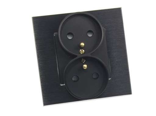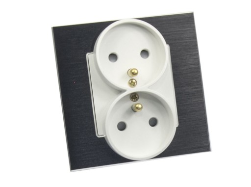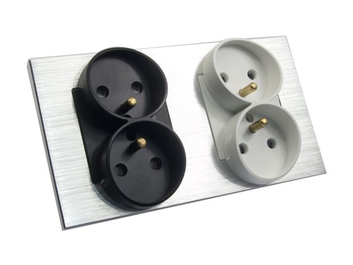 Gniazdo elektryczne podwójne z uziemieniem z zabezpieczeniem torów prądowych przed dziećmi.