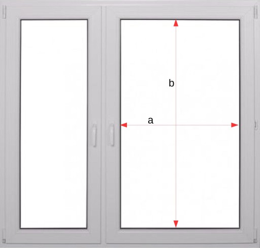 Należy zmierzyć szerokość (a) szyby razem z listwą przyszybową oraz wysokość (b) całe skrzydło okna.