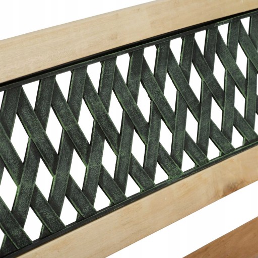 - materiał: drewno (topola), stal (rama malowana proszkowo), tworzywo sztuczne (ażurowe oparcie),