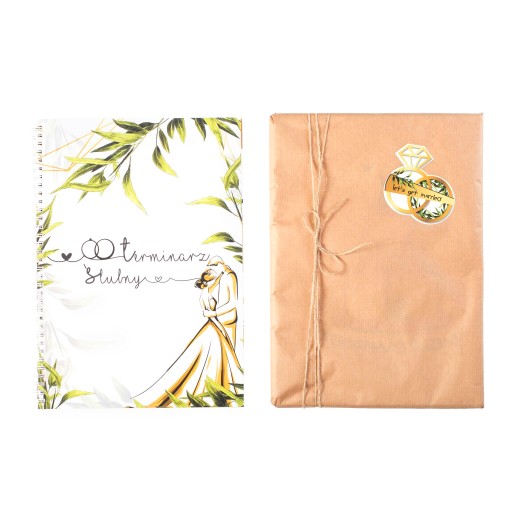 Otrzymasz wówczas terminarz zapakowany w papier eko, przewiązanie sznureczkiem oraz naklejkę let's get married.