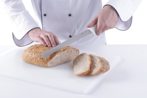 - antypoślizgowy biały uchwyt z polipropylenu (nóż do pieczywa, sera, nabiału),