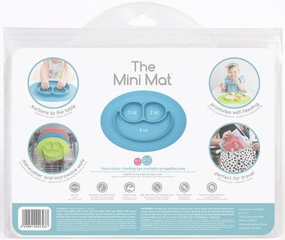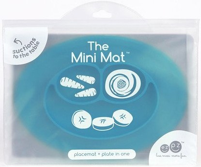 Mini Mat amerykańskiej marki EZPZ (czyt. izipizi) to nieduża, poręczna podkładka i trójdzielny talerzyk w jednym, stworzony z najbezpieczniejszego silikonu.