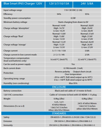 Charakterystyka ładowarki Blue Smart Charger IP65:
