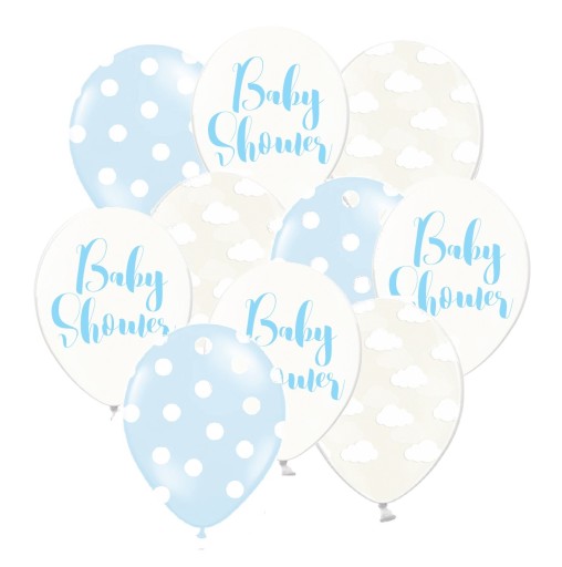 - balony lateksowe: kropki, chmurki, baby shower, 35 cm, 10 szt.,